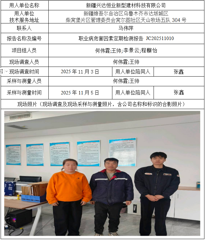 新疆兴达恒业新型建材科技有限公司职业病危害因素定期检测