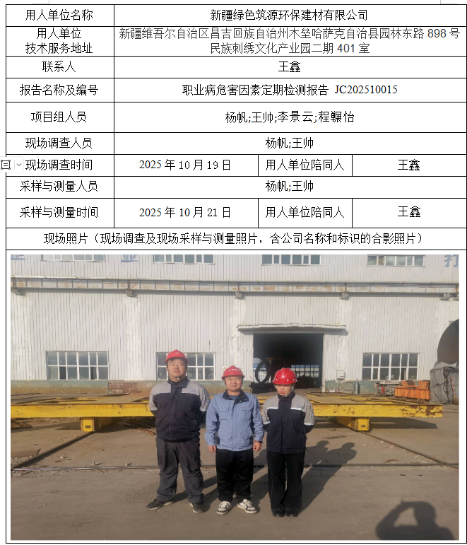 木垒泰胜风能装备有限公司职业病危害因素定期检测