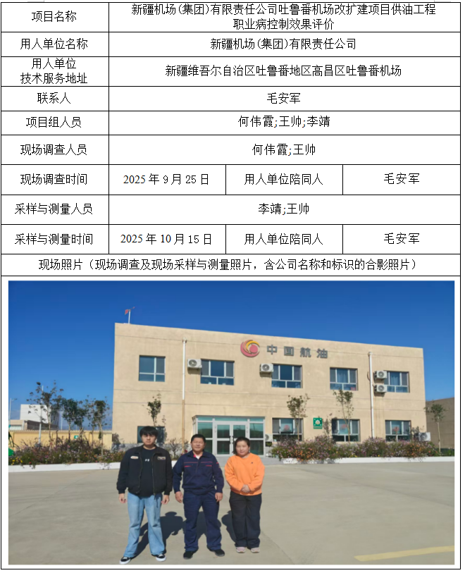吐鲁番机场改扩建项目职业病控制效果评价