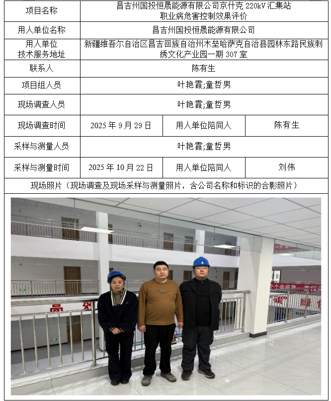 昌吉州国投恒晟能源有限公司京什克220kV汇集站职业病危害控制效果评价