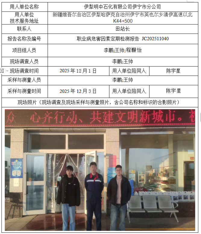 伊犁明中石化有限公司伊宁市分公司职业病危害因素定期检测