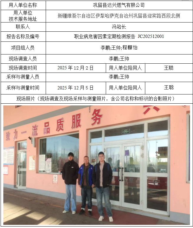 巩留县达兴燃气有限公司职业病危害因素定期检测