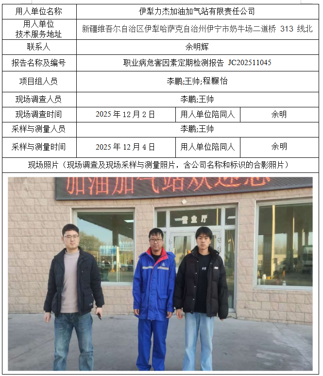 伊犁力杰加油加气站有限责任公司职业病危害因素定期检测