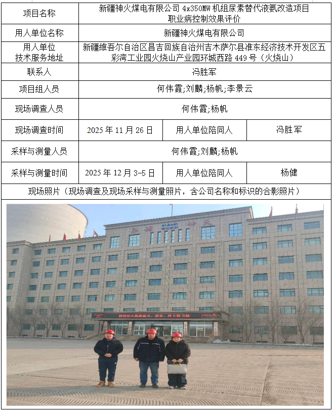 新疆神火煤电有限公司4x350MW机组尿素替代液氨改造项目职业病危害控制效果评价 2026-02-03 15:11:17