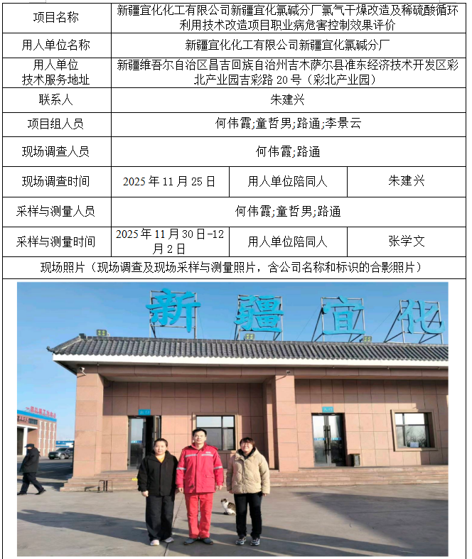 新疆宜化化工有限公司新疆宜化氯碱分厂氯气干燥改造及稀硫酸循环利用技术改造项目职业病危害控制效果评价 2026-02-04 09:57:40