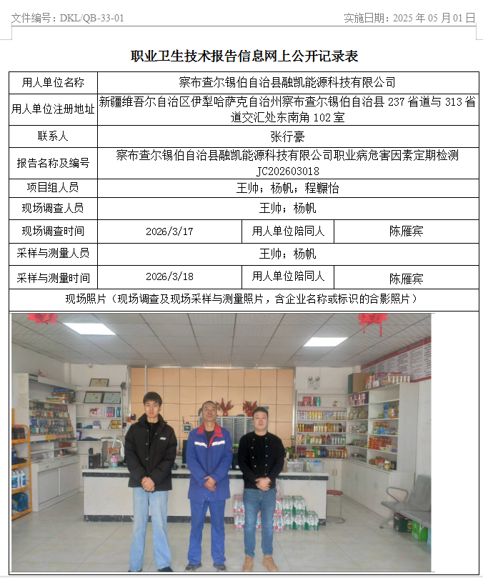 察布查尔锡伯自治县融凯能源科技有限公司职业病危害因素定期检测