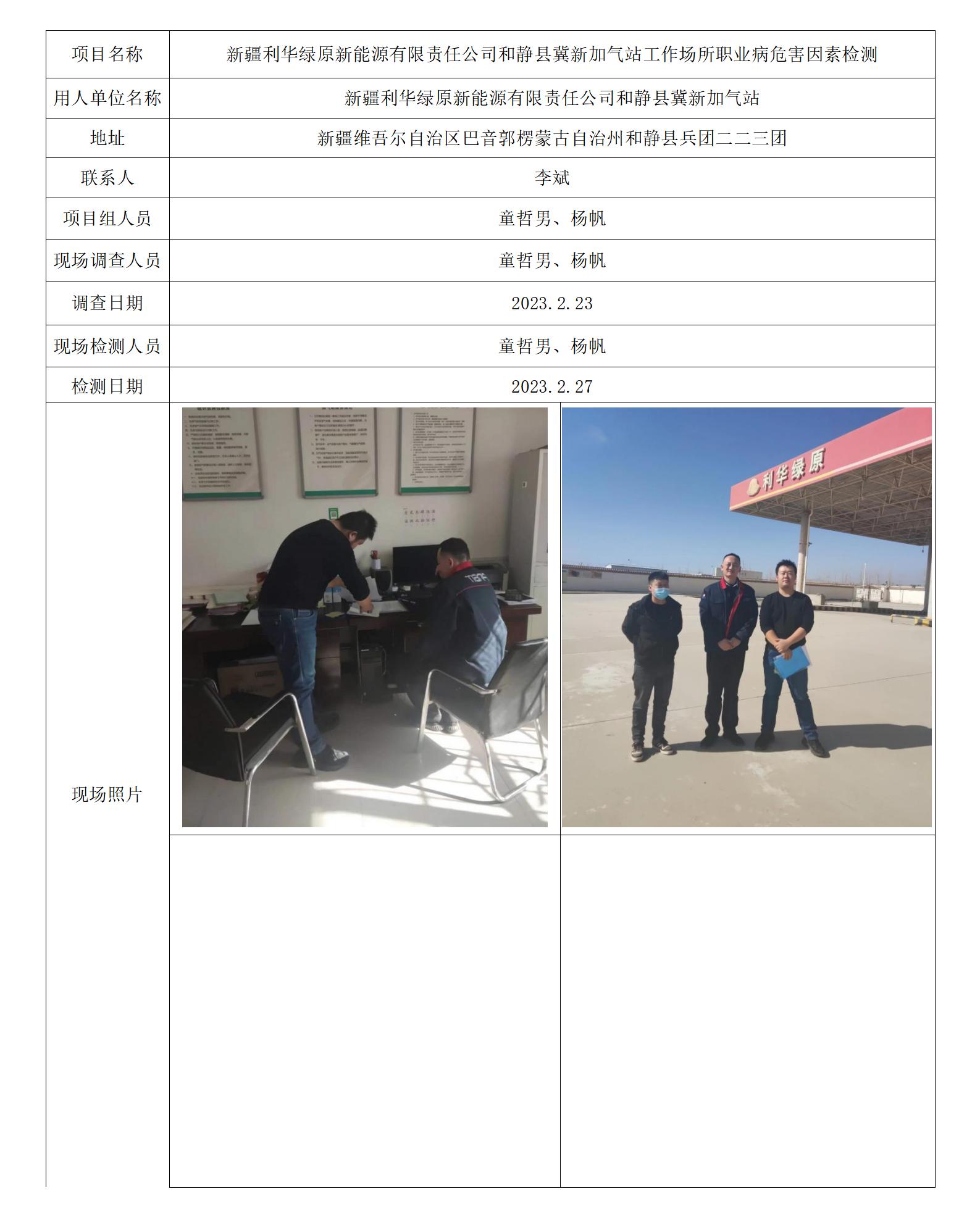 新疆利华绿原新能源有限责任公司和静县冀新加气站工作场所职业病危害因素检测