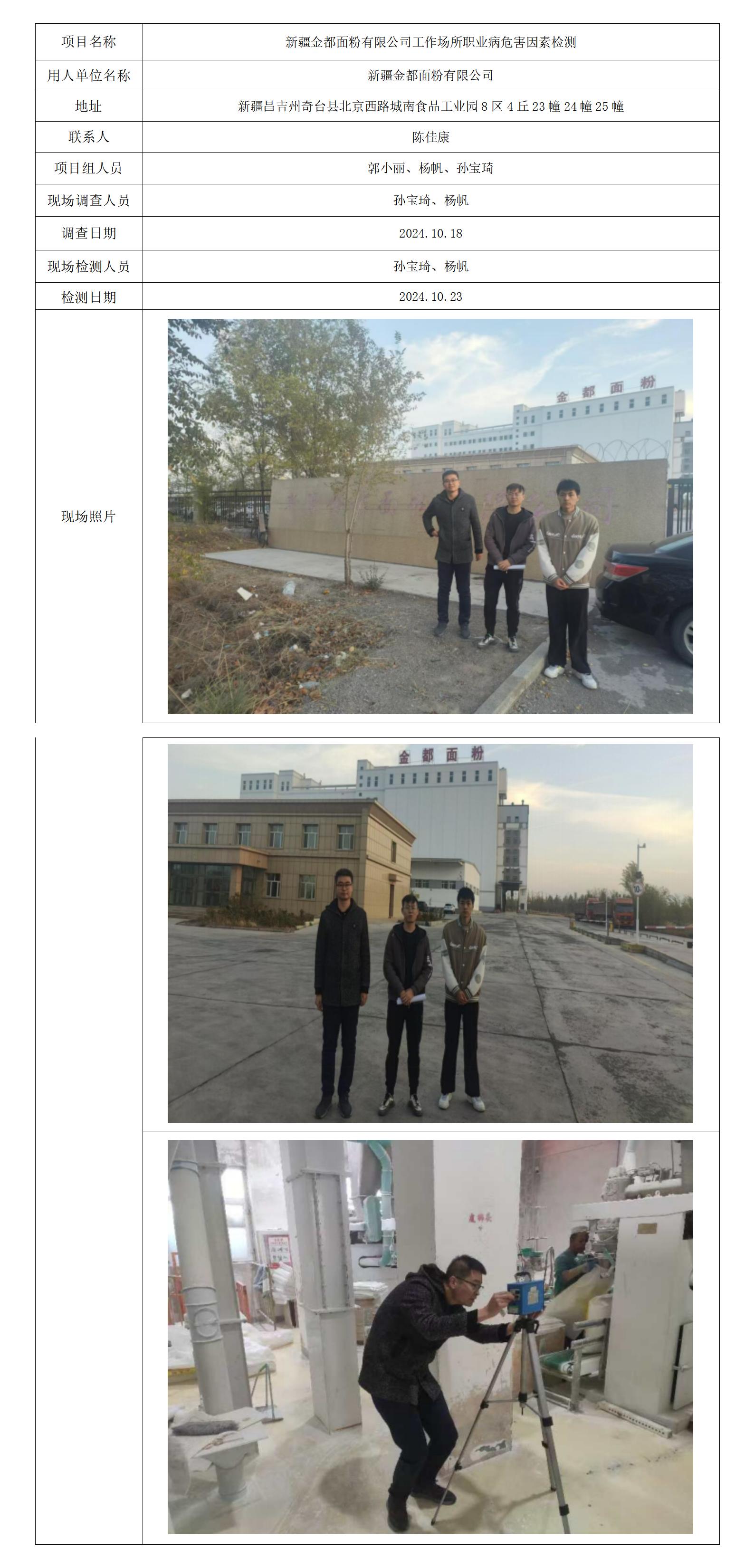 新疆金都面粉有限公司工作场所职业病危害因素检测