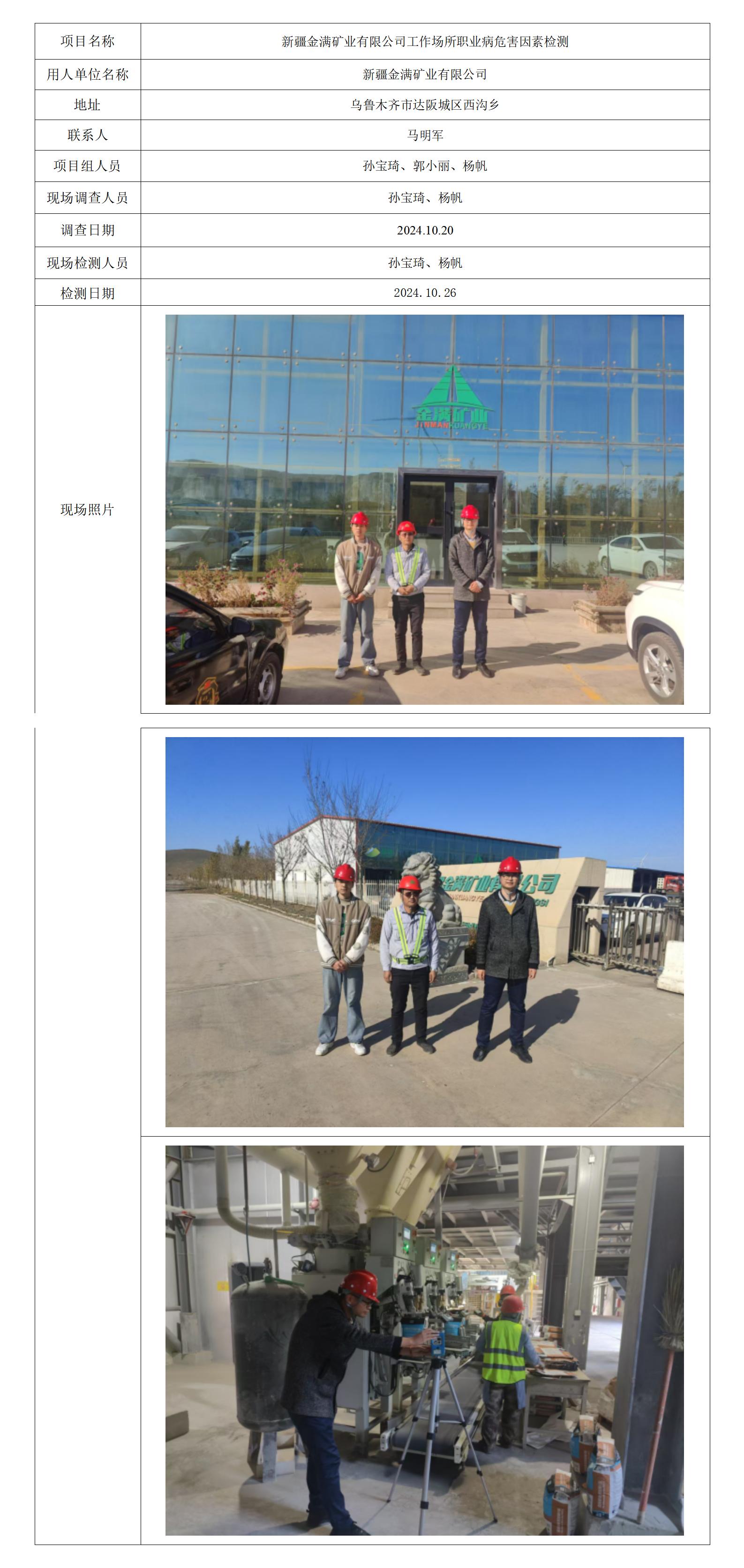 新疆金满矿业有限公工作场所职业病危害因素检测