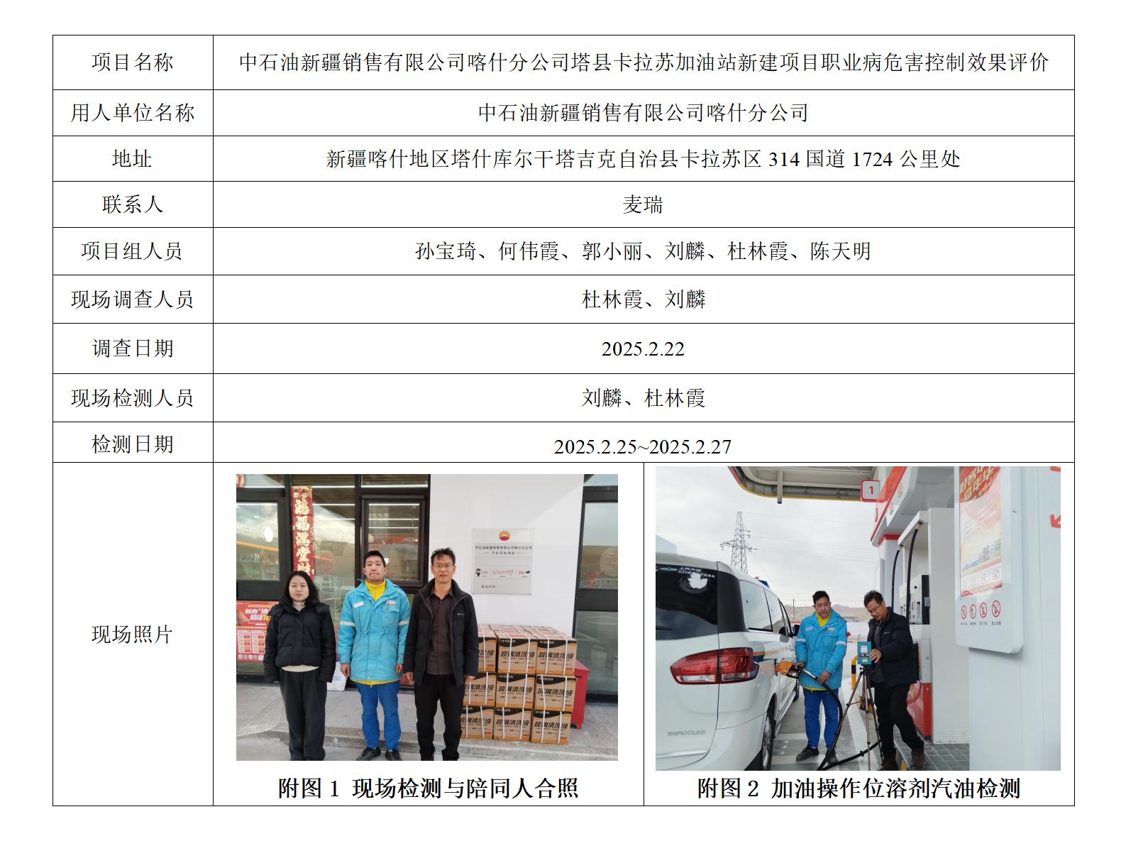 中石油新疆销售有限公司喀什分公司塔县卡拉苏加油站新建项目职业病危害控制效果评价