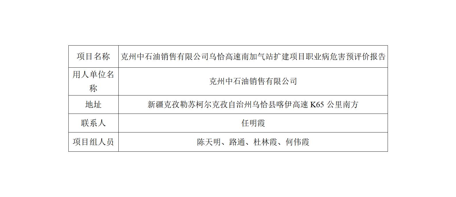 克州中石油销售有限公司乌恰高速南加气站扩建项目职业病危害预评价