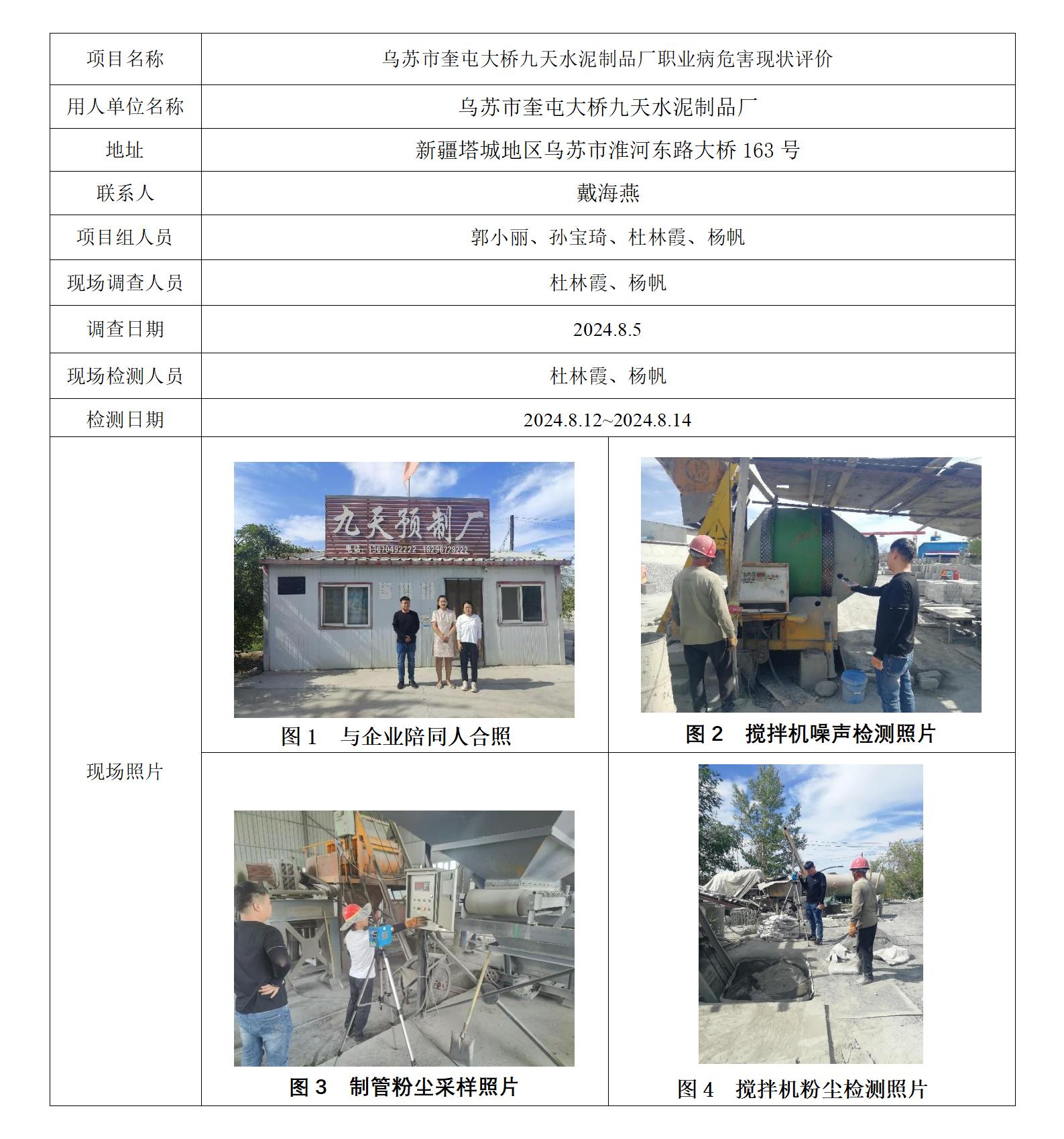 乌苏市奎屯大桥九天水泥制品厂工作场所职业病危害现状评价
