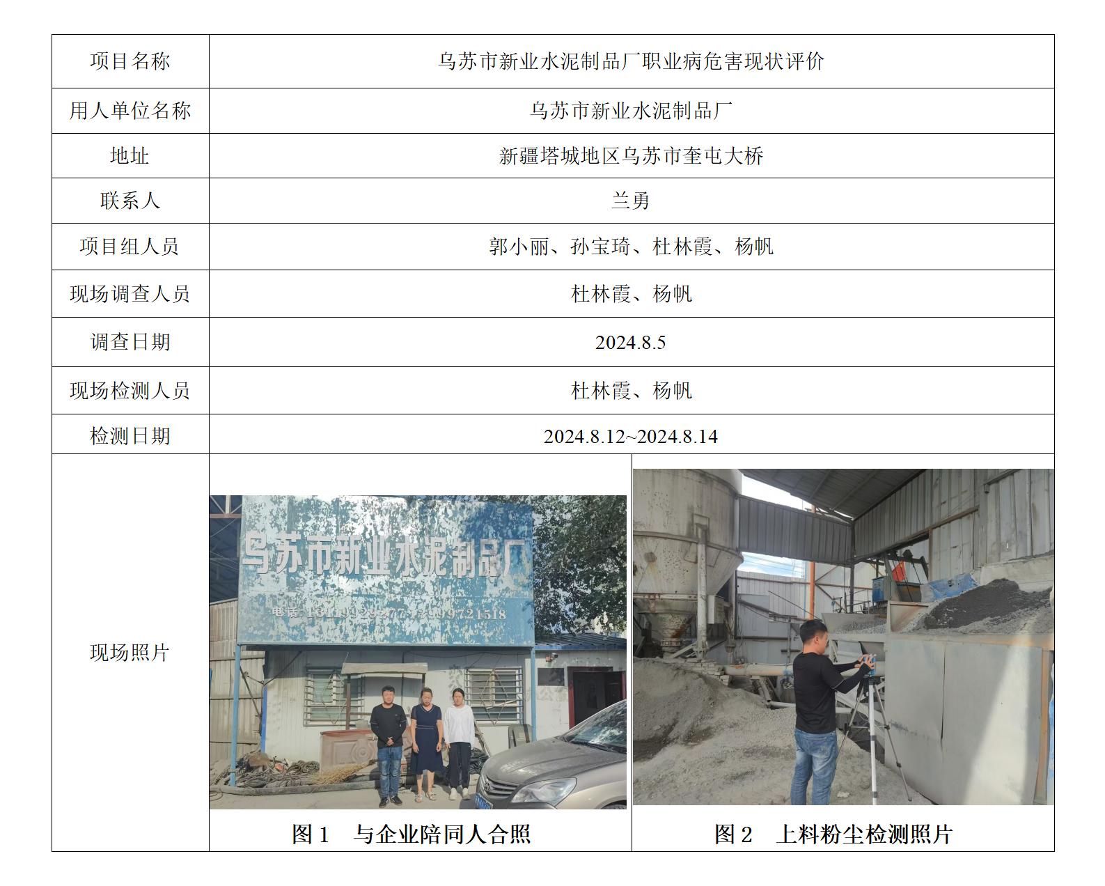 乌苏市新业水泥制品厂工作场所职业病危害现状评价