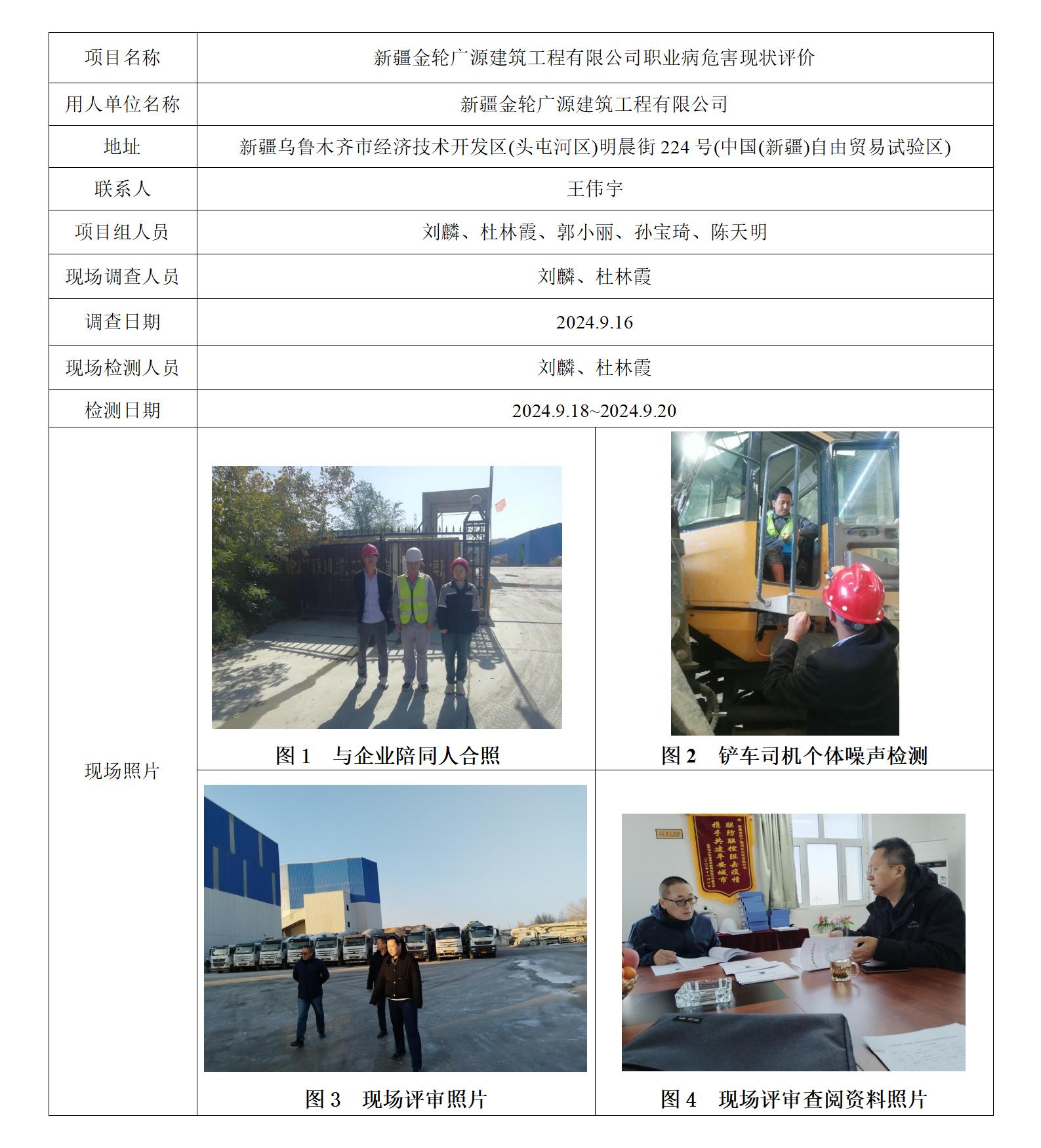 新疆金轮广源建筑工程有限公司职业病危害现状评价