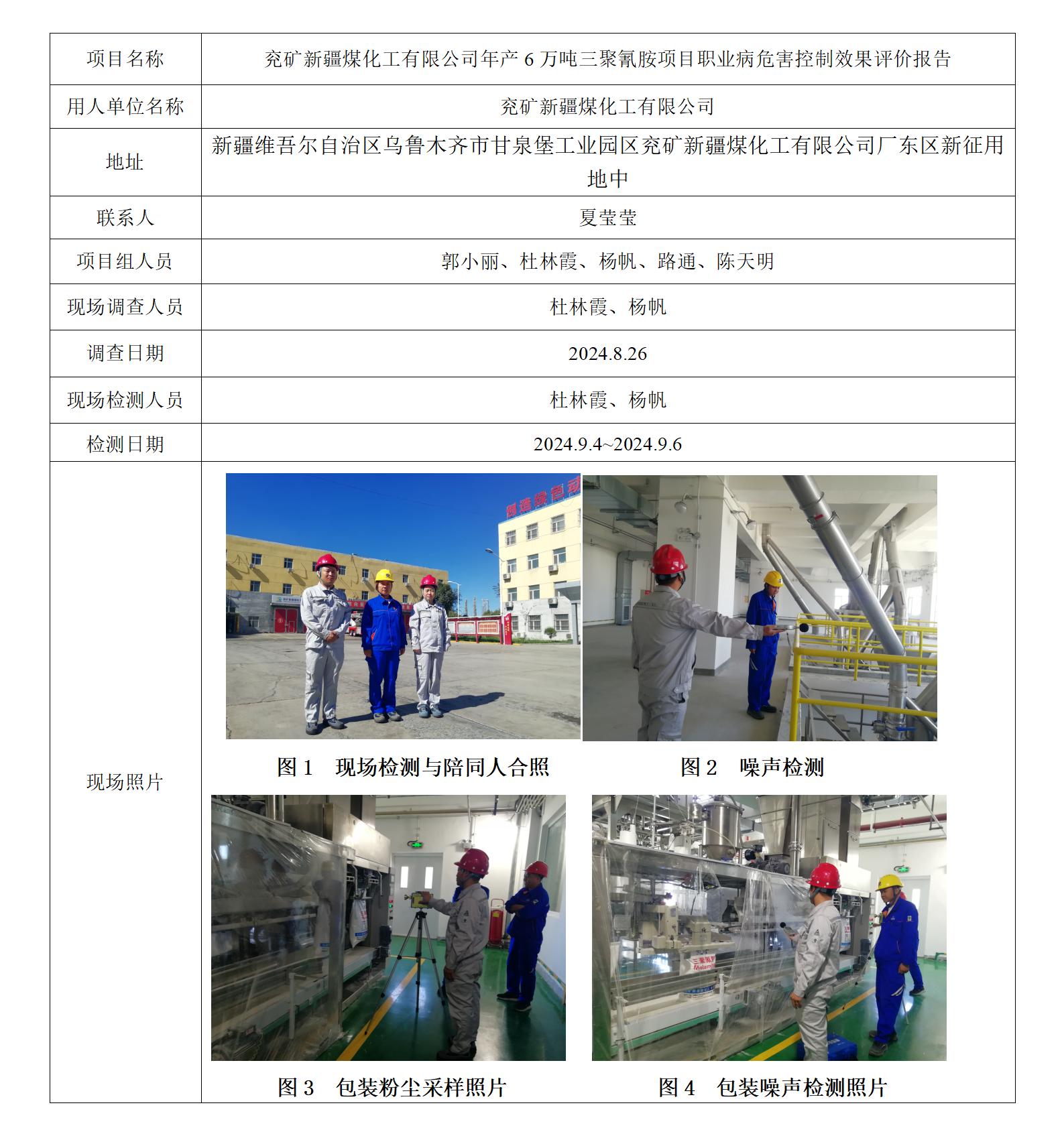 兖矿新疆煤化工有限公司年产6万吨三聚氰胺项目职业病危害控制效果评价
