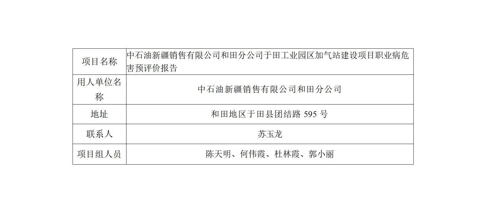 中石油新疆销售有限公司和田分公司于田工业园区加气站建设项目职业病危害预评价报告