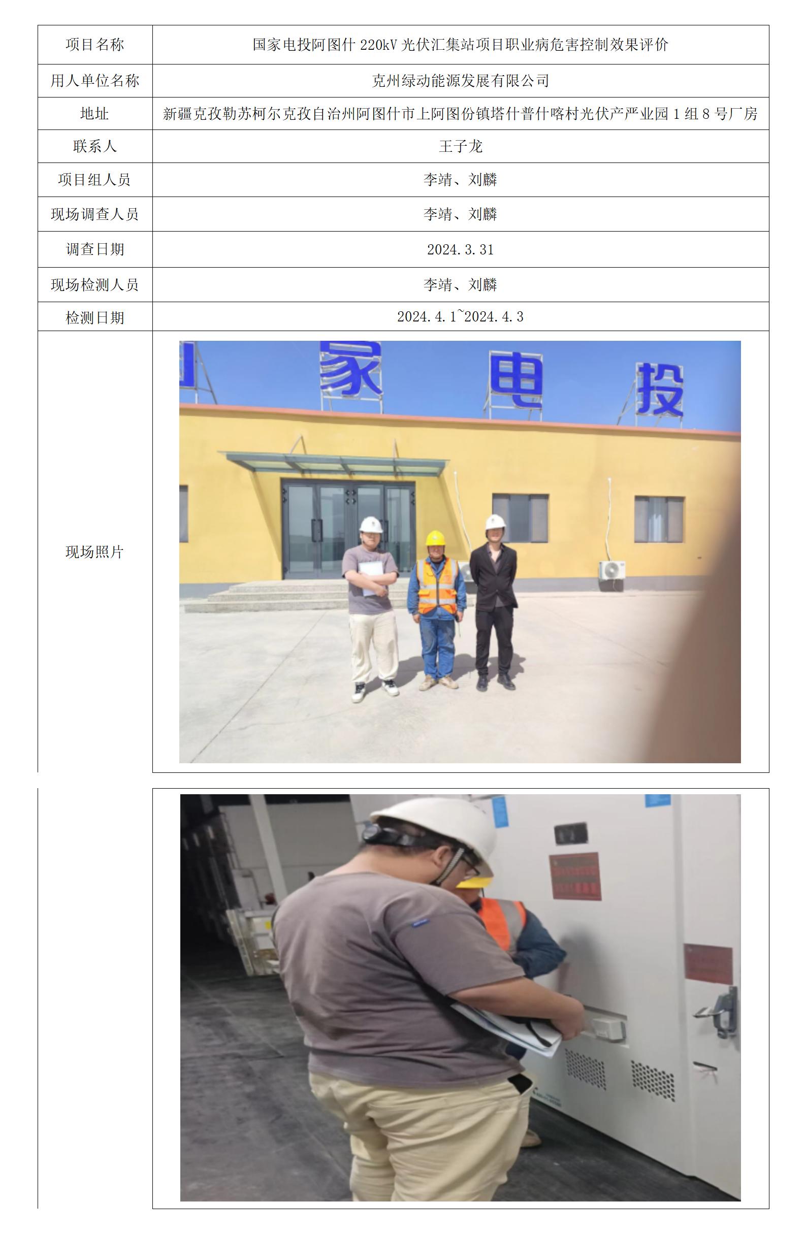 国家电投阿图什220kV光伏汇集站项目职业病危害控制效果评价