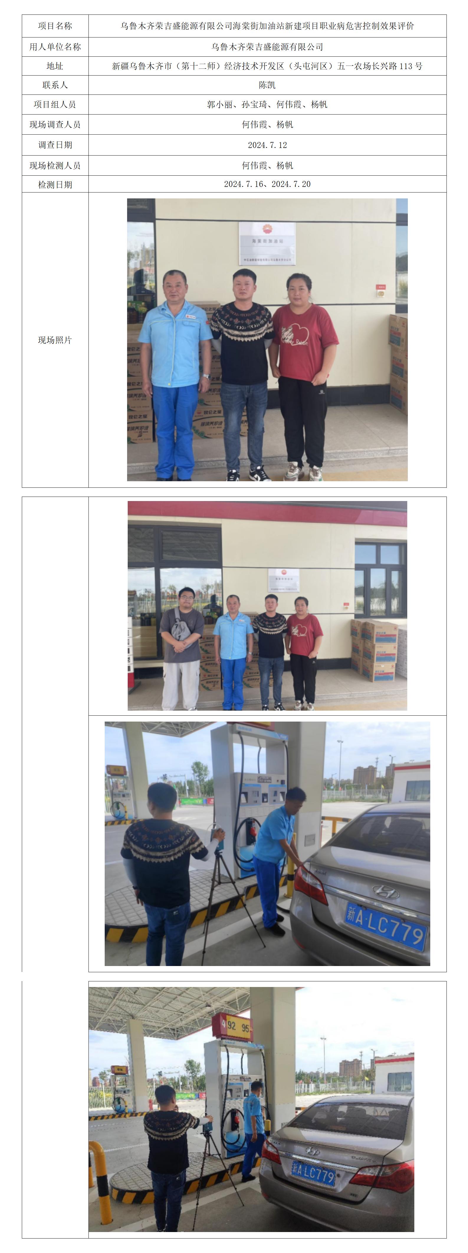 乌鲁木齐荣吉盛能源有限公司海棠街加油站新建项目职业病危害控制效果评价
