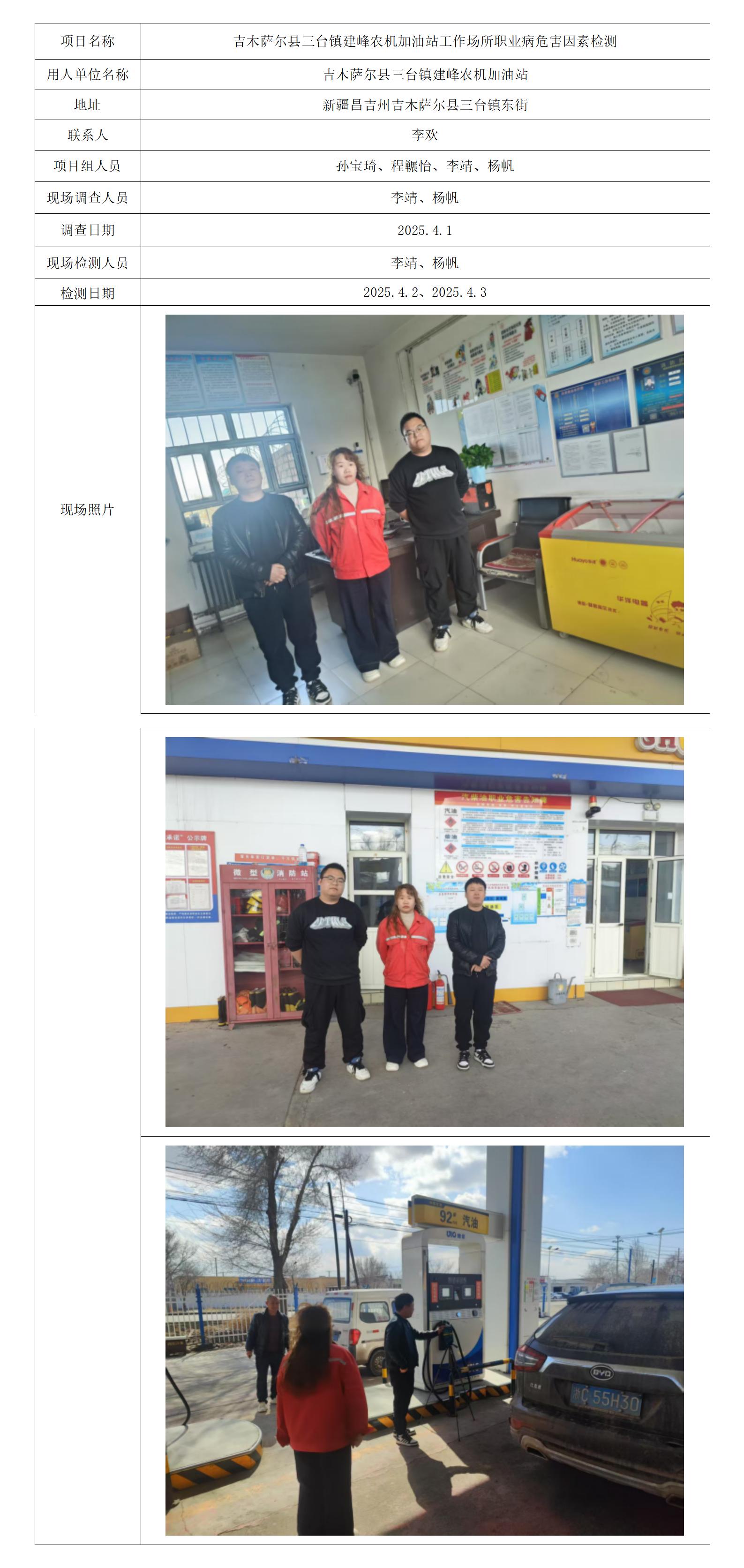 吉木萨尔县三台镇建峰农机加油站工作场所职业病危害因素检测