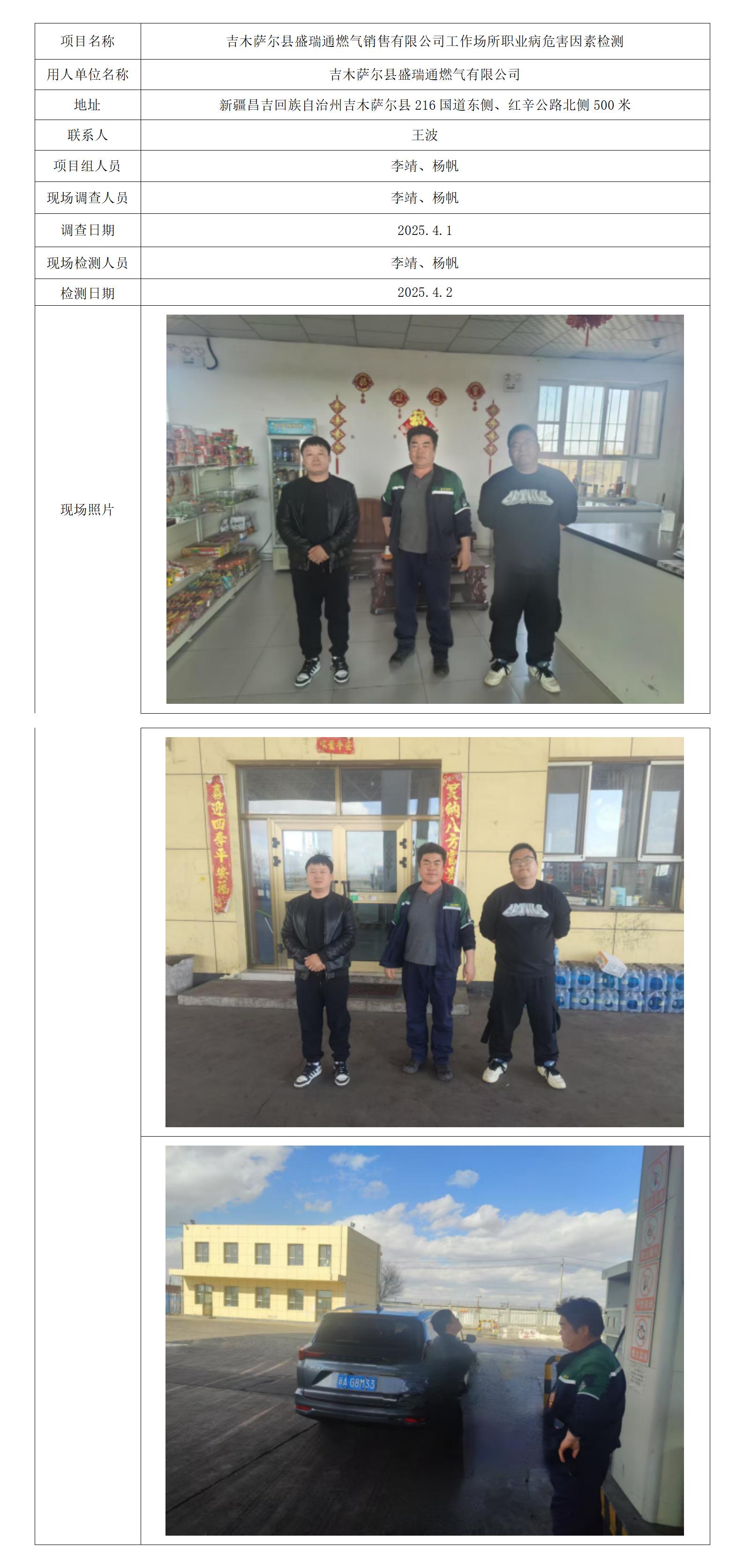 吉木萨尔县盛瑞通燃气销售有限公司工作场所职业病危害因素检测