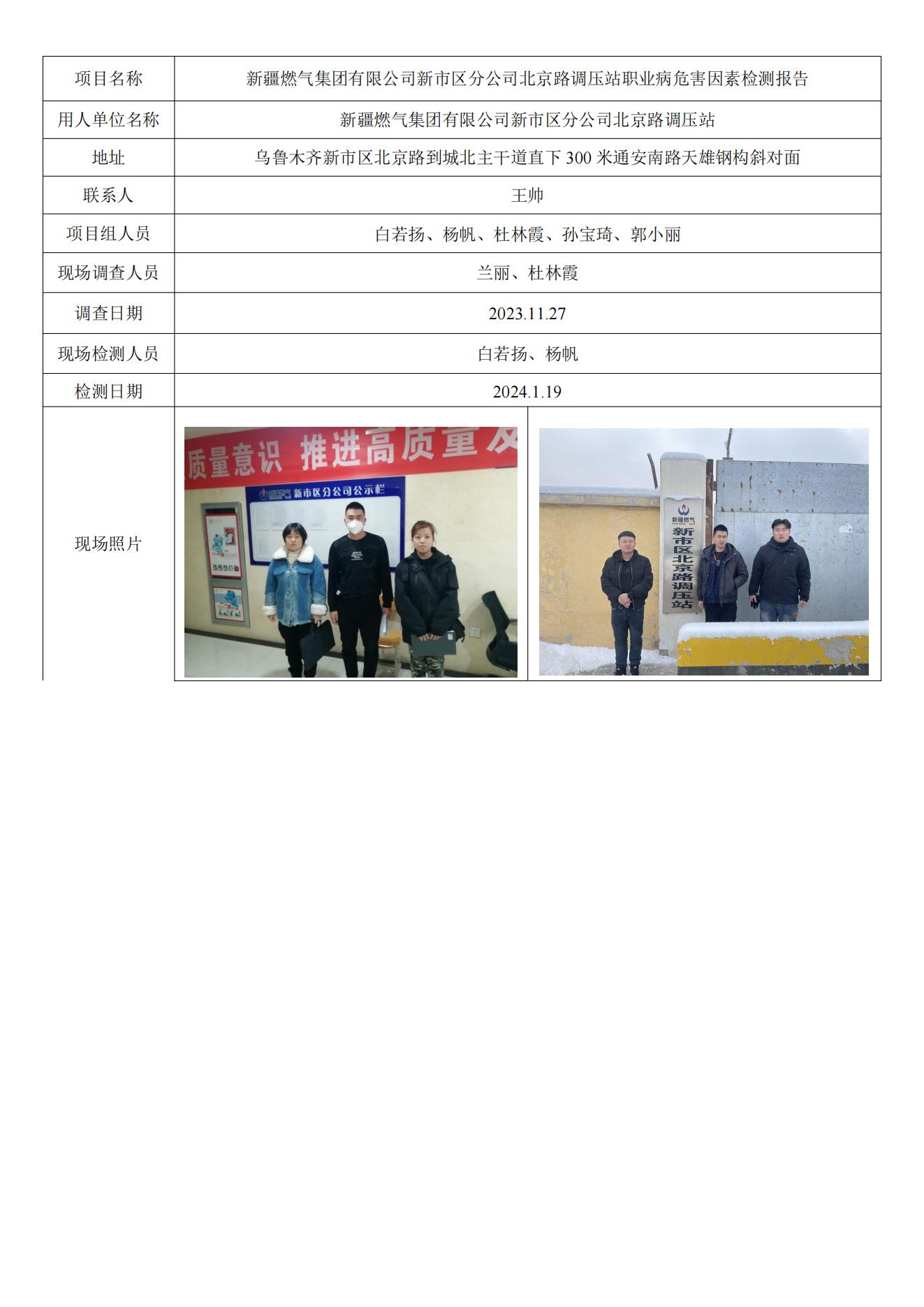 新疆燃气集团有限公司新市区分公司北京路调压站职业病危害因素检测报告