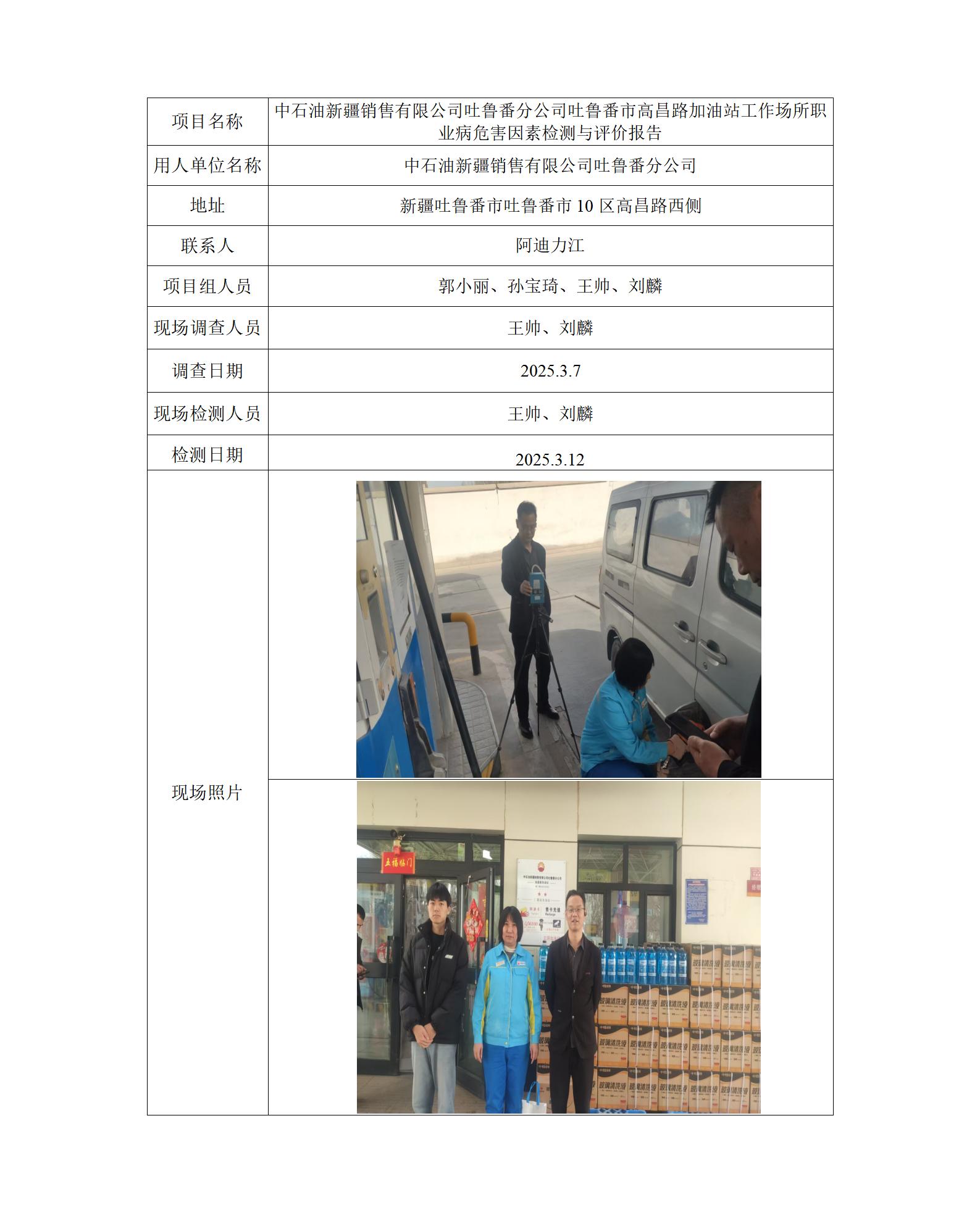 -中石油新疆销售有限公司吐鲁番分公司吐鲁番市高昌路加油站工作场所职业病危害因素检测与评价报告 2025-04-17 10:18:53