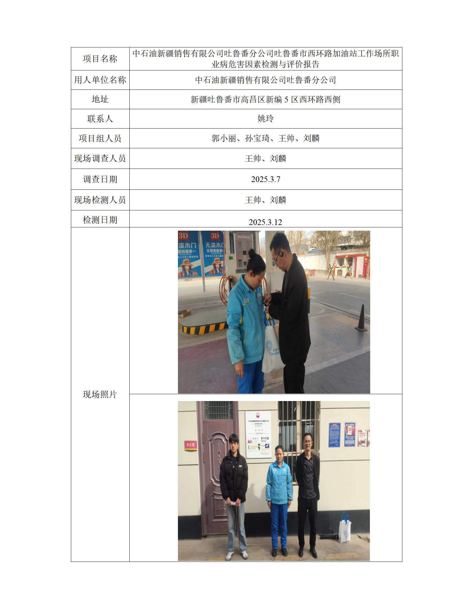 中石油新疆销售有限公司吐鲁番分公司吐鲁番市西环路加油站工作场所职业病危害因素检测与评价报告 2025-04-17 10:21:37