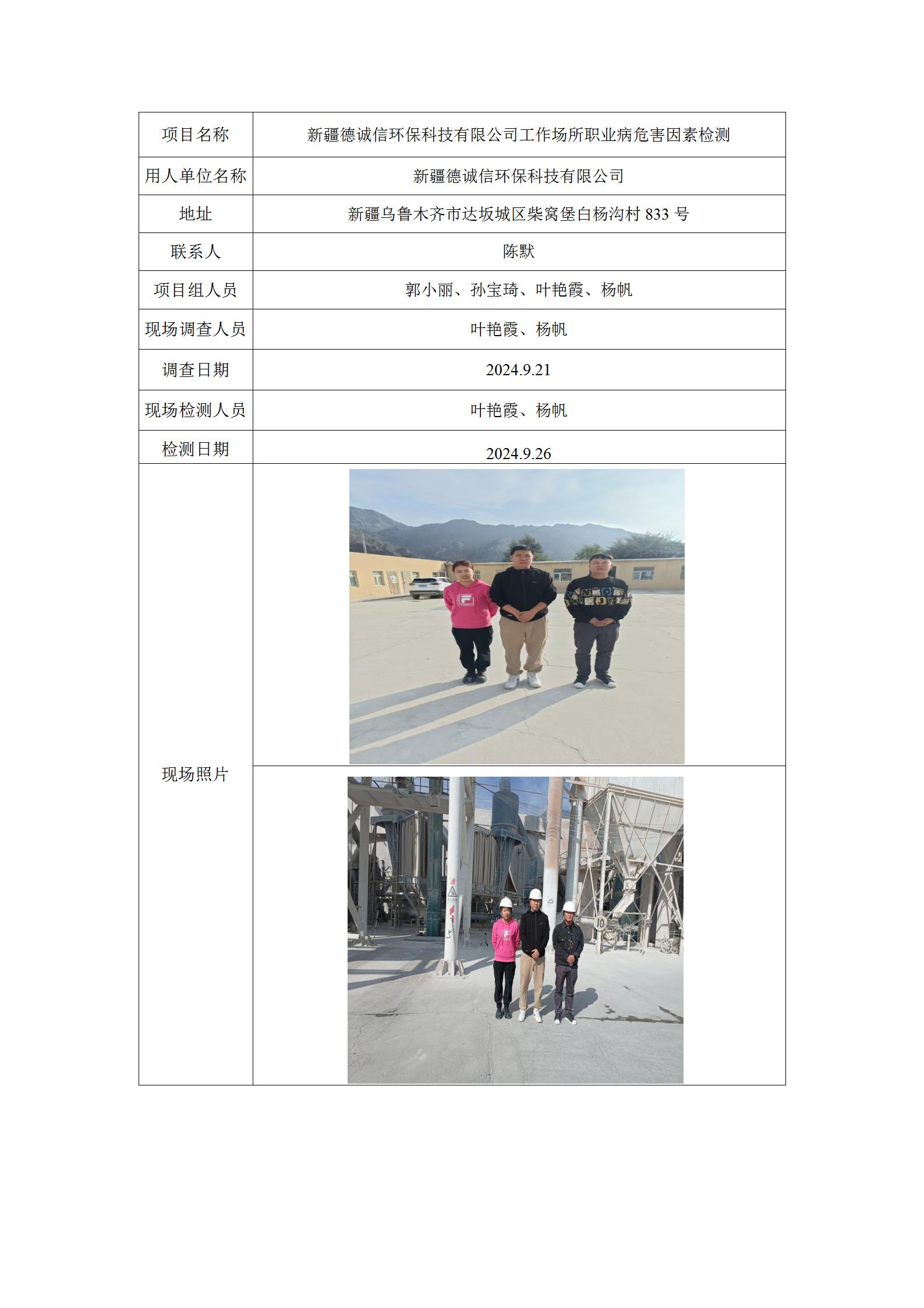 新疆德诚信环保科技有限公司工作场所职业病危害因素检测