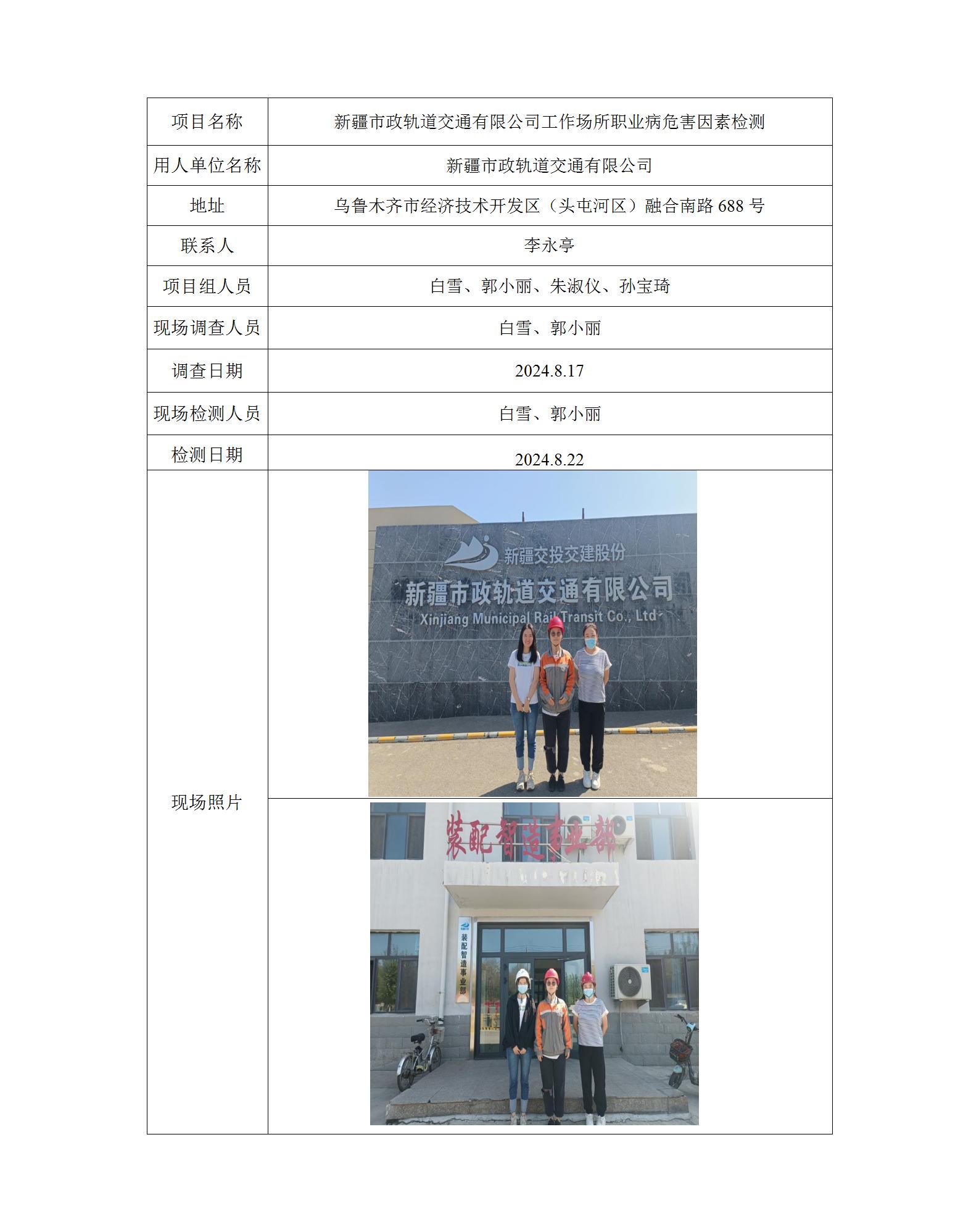 新疆市政轨道交通有限公司工作场所职业病危害因素检测