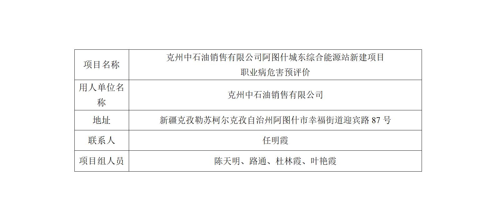 克州中石油销售有限公司阿图什城东综合能源新建加油站职业病危害预评价
