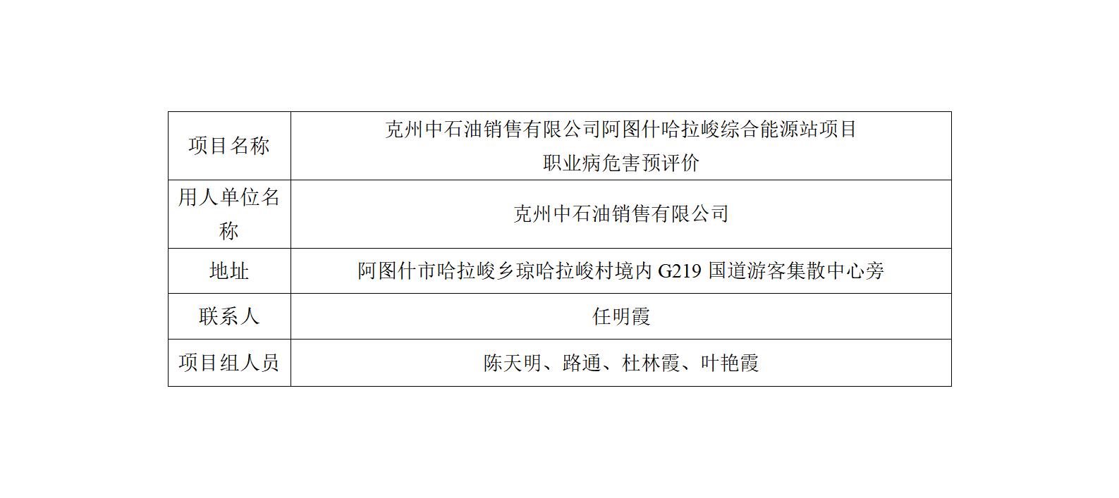 克州中石油销售有限公司阿图什市哈拉峻乡职业病危害预评价
