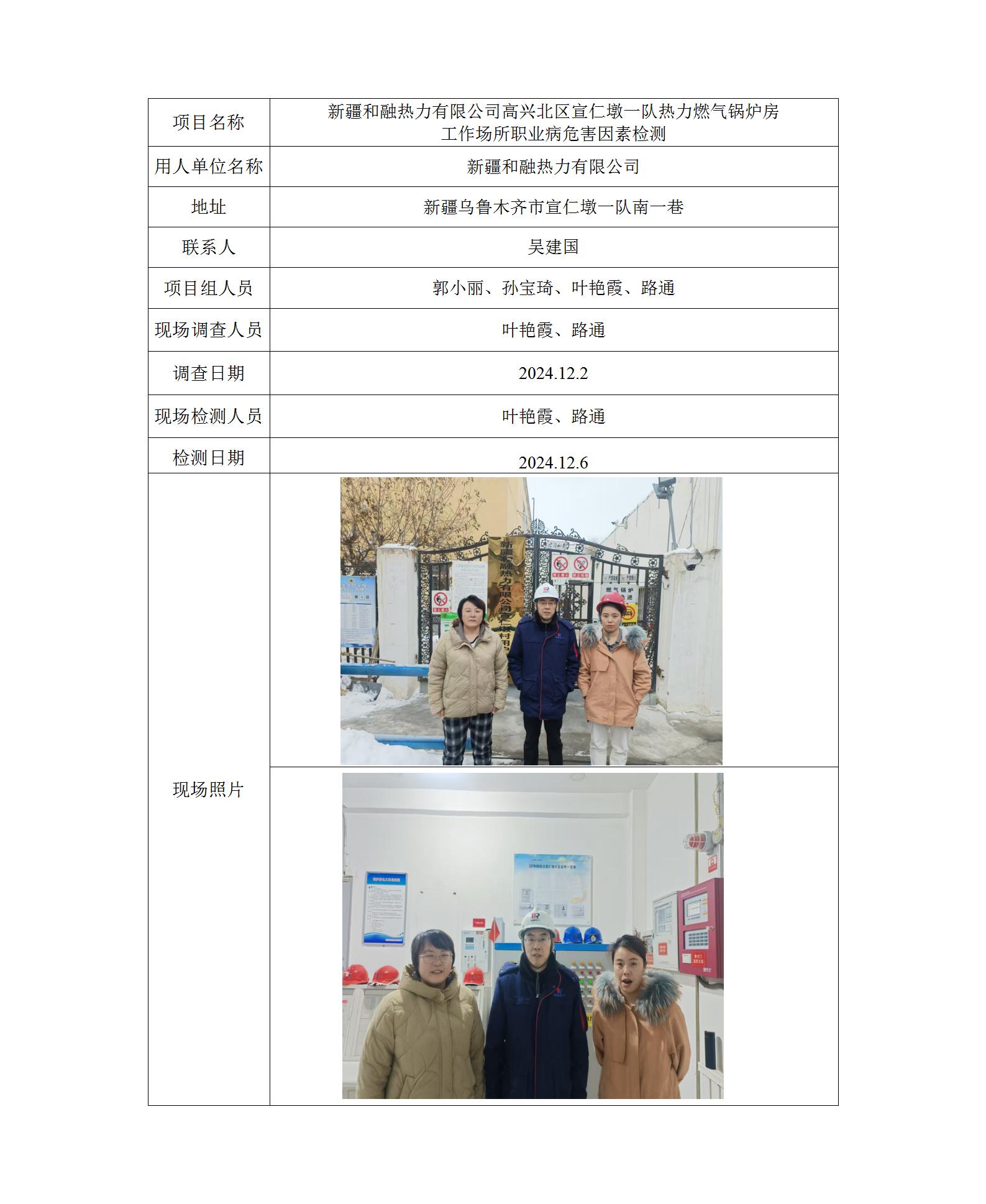 新疆和融热力有限公司高兴北区宣仁墩一队热力燃气锅炉房工作场所职业病危害因素检测