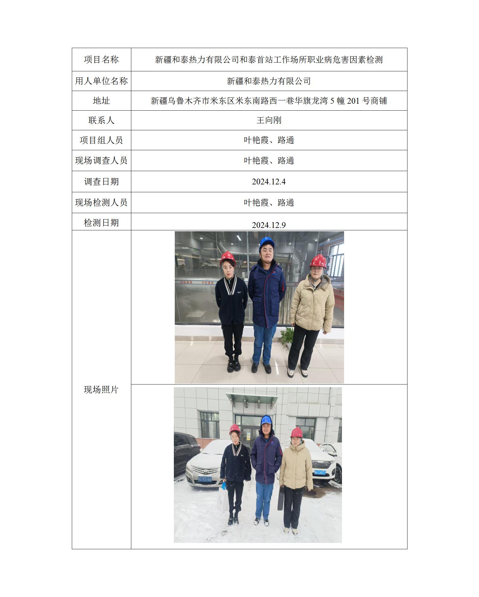 新疆和泰热力有限公司和泰首站工作场所职业病危害因素检测