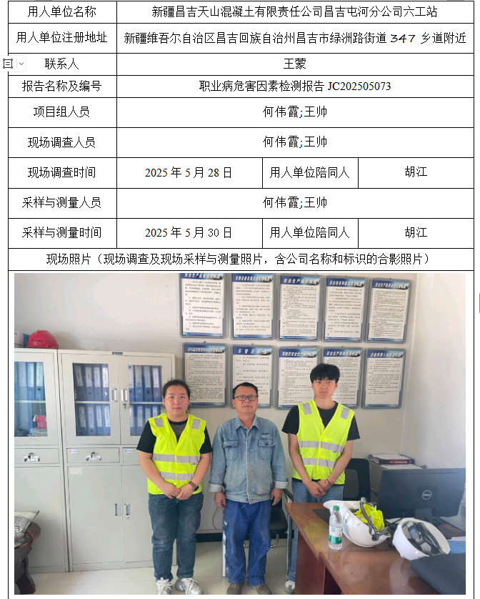 新疆昌吉天山混凝土有限责任公司昌吉屯河分公司六工站职业病危害因素定期检测