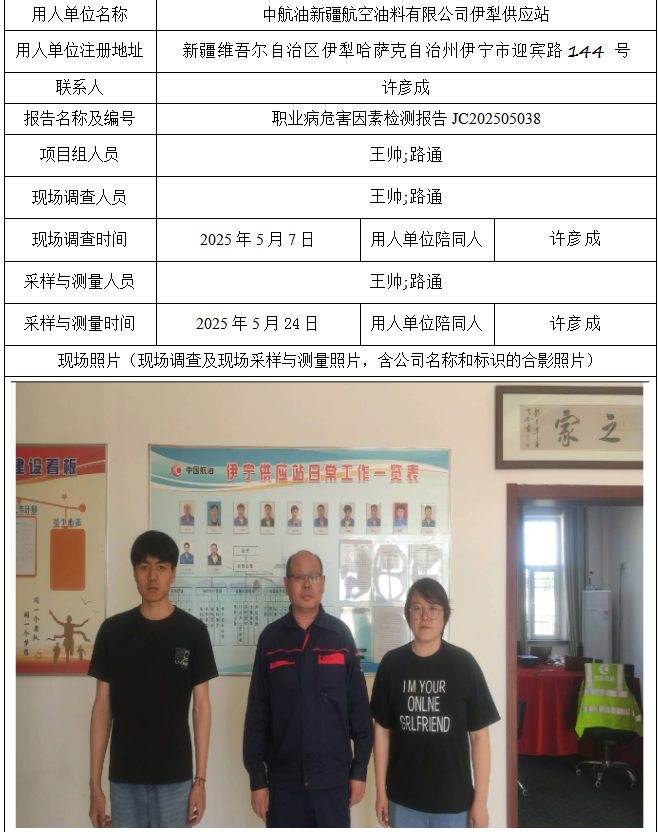 中航油新疆航空油料有限公司伊犁供应站职业病危害因素定期检测