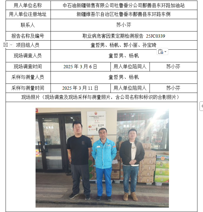中石油新疆销售有限公司吐鲁番分公司鄯善县东环路加油站工作场所职业病危害因素定期检测