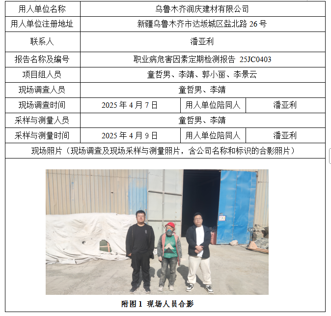 乌鲁木齐润庆建材有限公司工作场所职业病危害因素定期检测