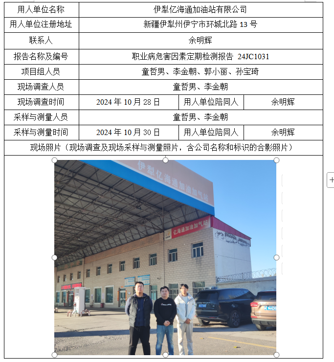 伊犁亿海通加油站有限公司工作场所职业病危害因素定期检测