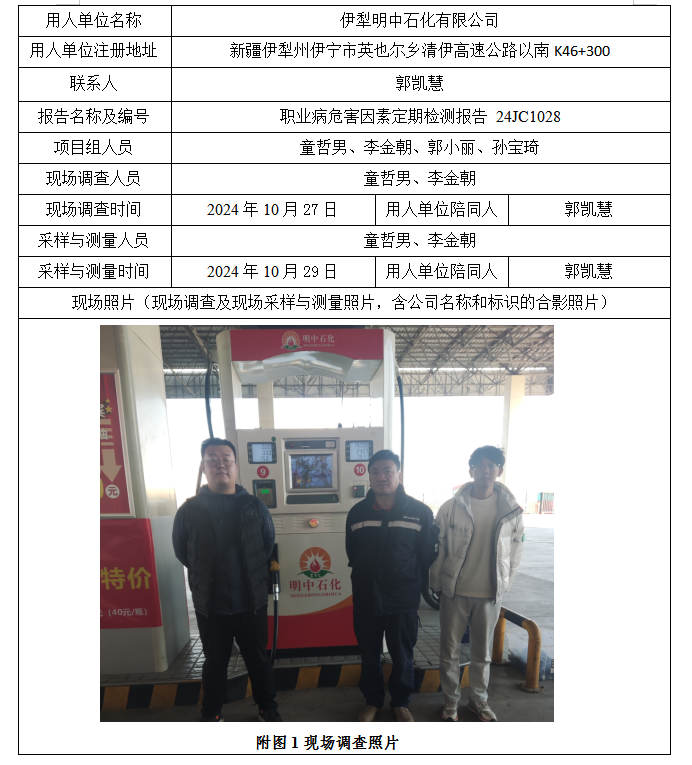 伊犁明中石化有限公司工作场所职业病危害因素定期检测