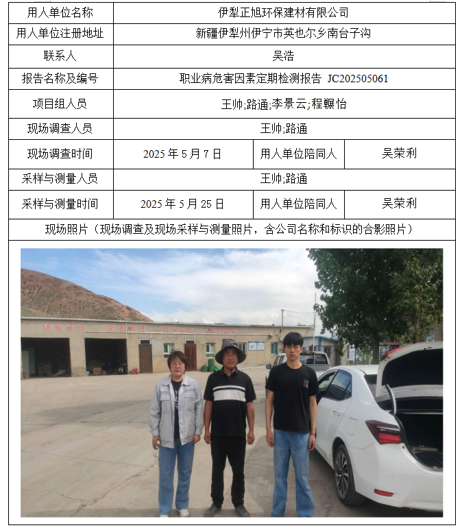 伊犁正旭环保建材有限公司职业病危害因素定期检测