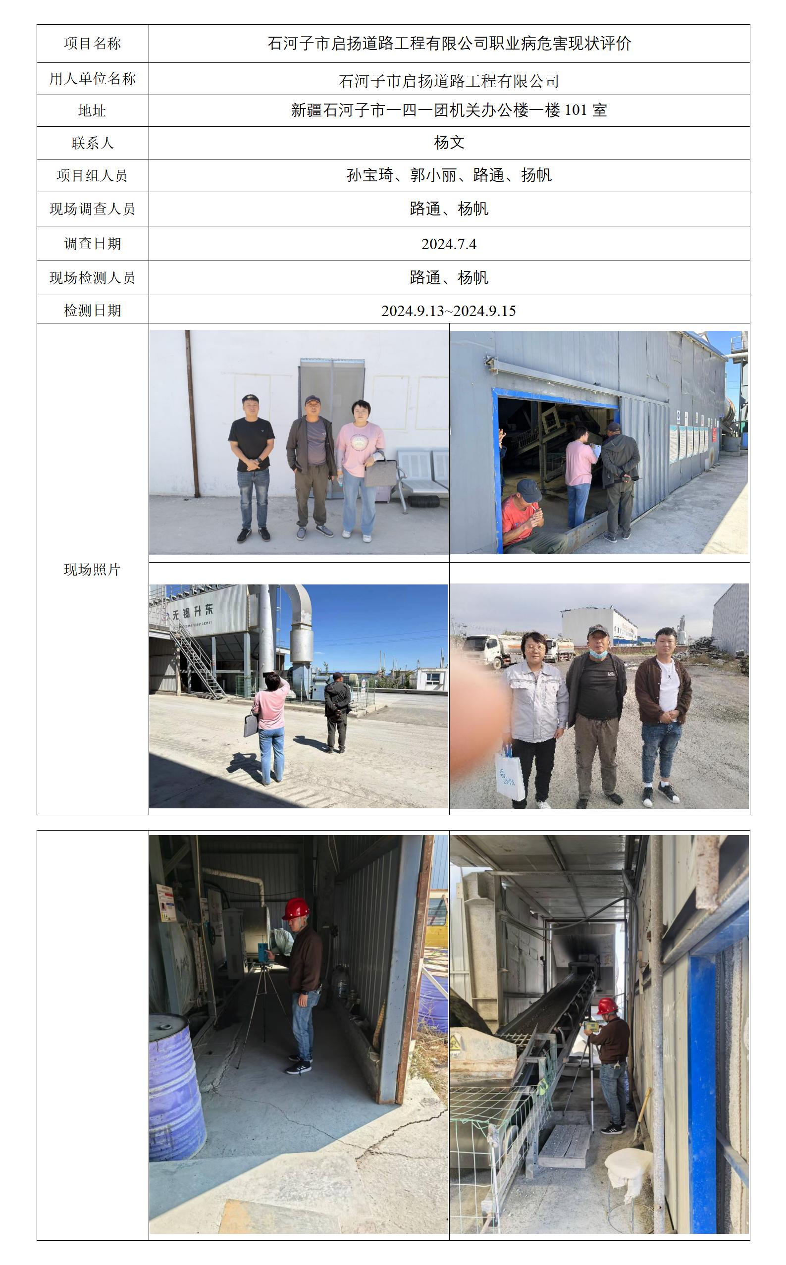 石河子市启扬道路工程有限公司职业病危害现状评价