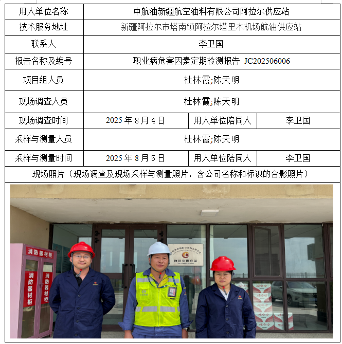 中航油新疆航空油料有限公司阿拉尔供应站职业病危害因素定期检测