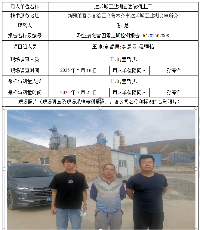 达坂城区盐湖宏达膨润土厂职业病危害因素定期检测