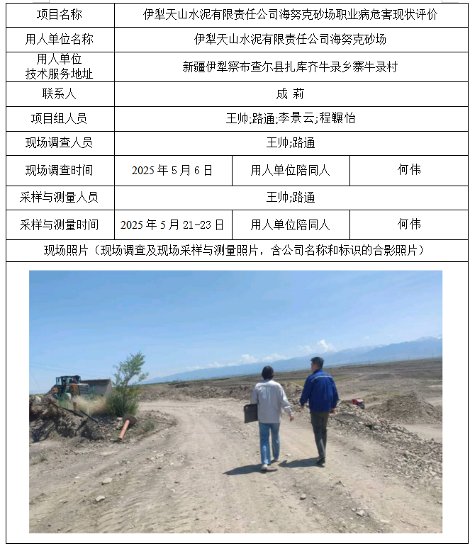 伊犁天山水泥有限责任公司海努克砂场职业病危害现状评价
