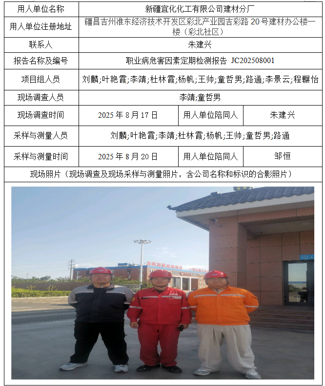新疆宜化化工有限公司建材分厂职业病危害因素定期检测