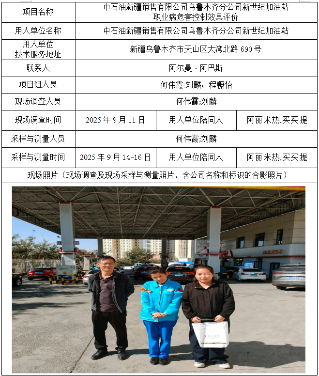 中石油新疆销售有限公司乌鲁木齐分公司新世纪加油站职业病危害控制效果评价