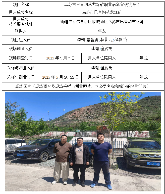 乌苏市巴音沟丛龙煤矿职业病危害现状评价