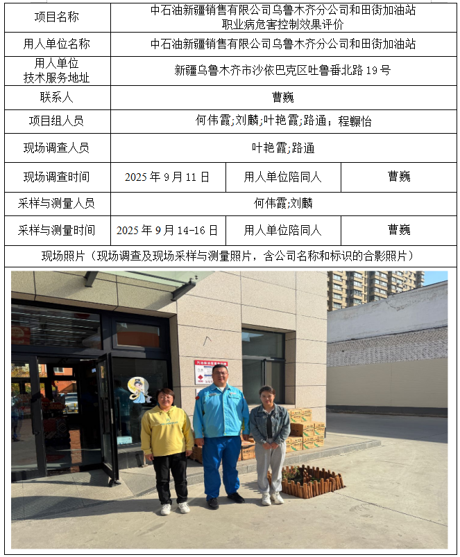 中石油新疆销售有限公司乌鲁木齐分公司和田街加油站职业病危害控制效果评价