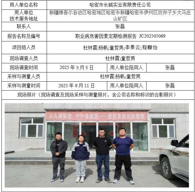 哈密市长城实业有限责任公司职业病危害因素定期检测