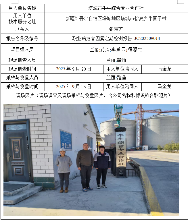 塔城市牛牛综合专业合作社职业病危害因素定期检测